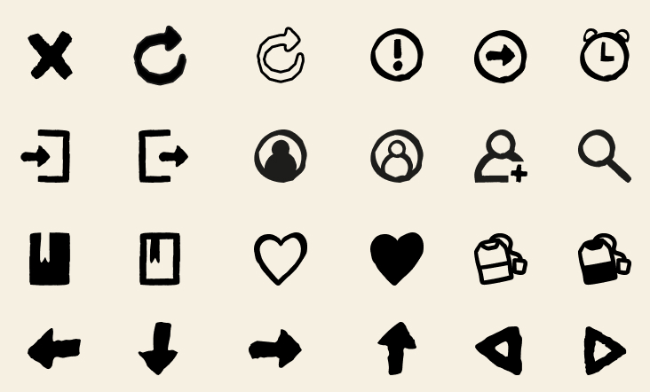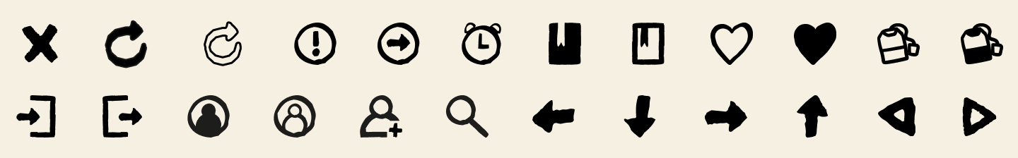Auch die in der App verwendeten Icons habe ich entweder aus Glyphen der gewählten Titelschrift abgeleitet oder vollständig von Hand gezeichnet, um den Stil der Handschriftlichkeit konsequent weiterzuführen und ein stimmiges Gesamtbild zu schaffen.