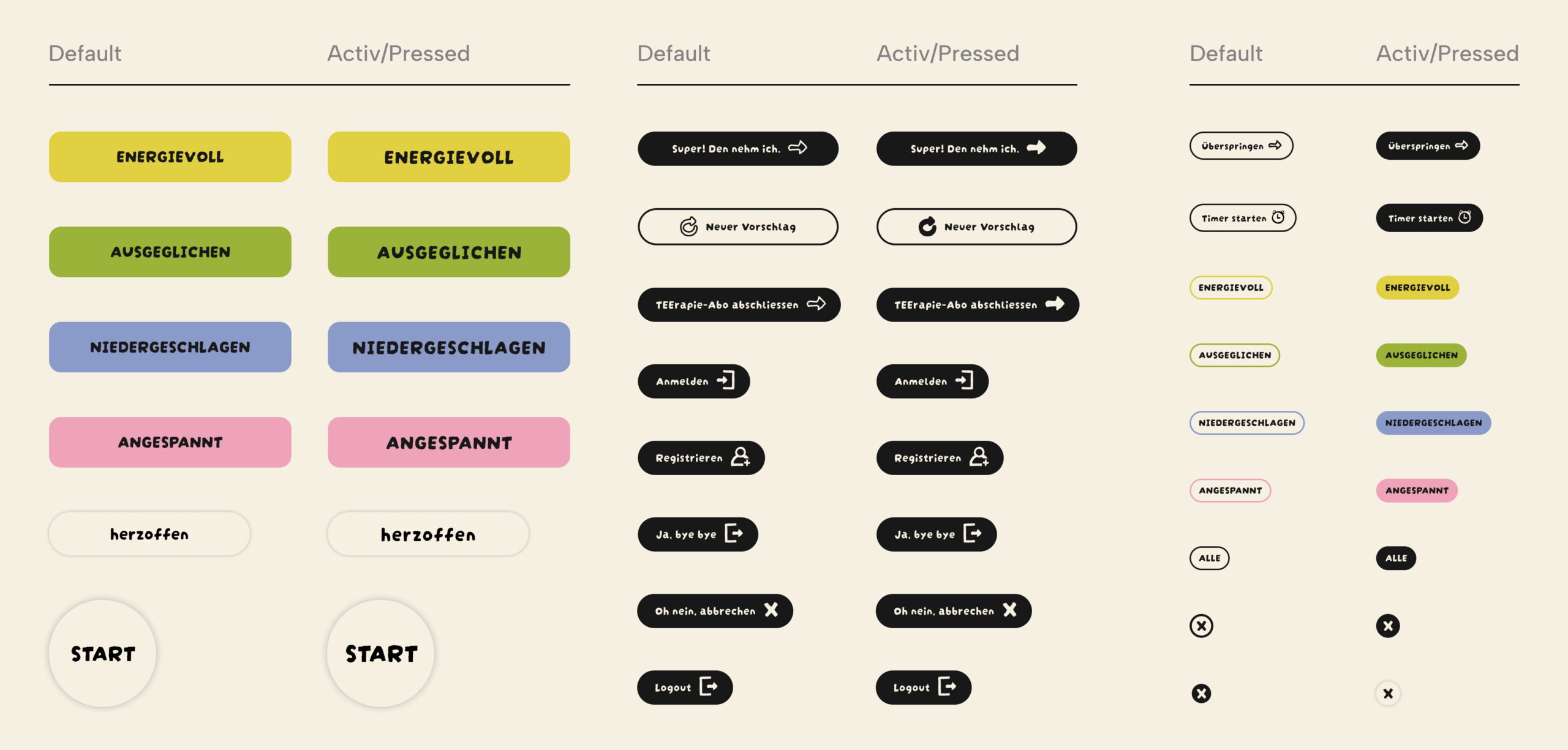 Beim Teegenerator wollte ich eine Überforderung für neue User:innen vermeiden. Deshalb fügte ich einen Startscreen mit Button ein, der bewusst in den Flow einleitet.